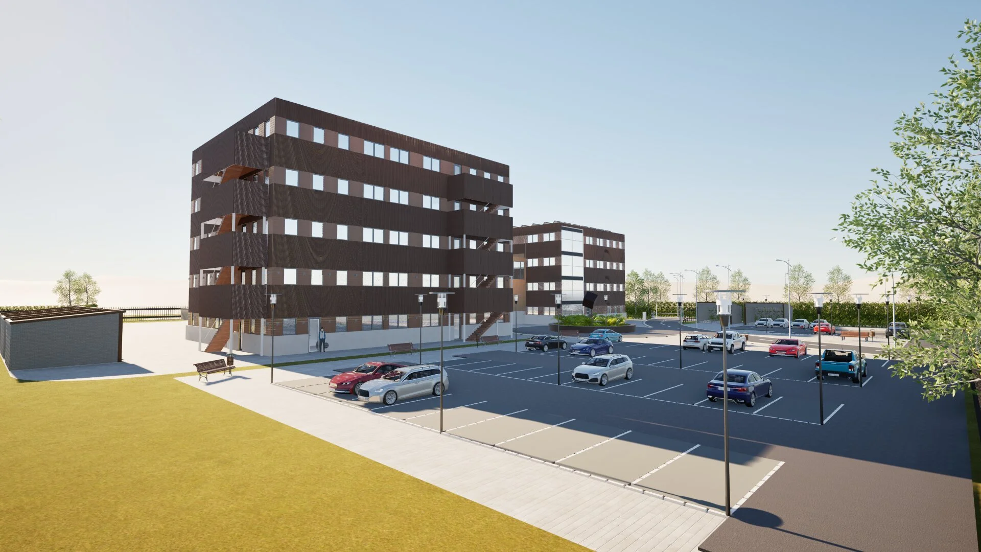 For my last school project assignment, we had to make and design a office building. With the focus on sustainability and using wooden constructions. So we had to be presice about our decisions to make the best outcome. We we’re tasked to realise 2 office builidings, with a company hall in the middle.